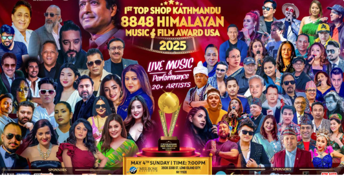 न्यूयोर्कमा आगामी May ४ तारिख ‘टपशप काठमाडौं ८८४८ हिमालयन म्युजिक एण्ड फिल्म अवार्ड’ पहिलोपटक आयोजना हुँदैछ। मेलरोज बॉलरुममा हुने यो अन्तर्राष्ट्रिय कार्यक्रमले नेपाली संगीत र चलचित्र क्षेत्रमा योगदान दिने कलाकारहरूलाई सम्मान गर्ने उद्देश्य लिएको छ।