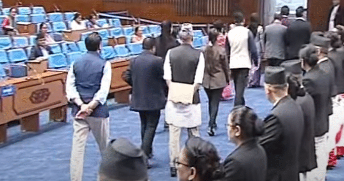 काठमाडौं, असार ८ – प्रतिनिधिसभामा सत्तापक्षका सांसदहरू बोल्न थालेपछि राष्ट्रिय स्वतन्त्र पार्टी (रास्वपा) का सांसदहरू सभाकक्षबाट बाहिरिएका छन्। रास्वपाले भिजिट भिसा प्रकरणमा छानबिनको माग गर्दै निरन्तर संसदमा विरोध जारी राखेको छ।