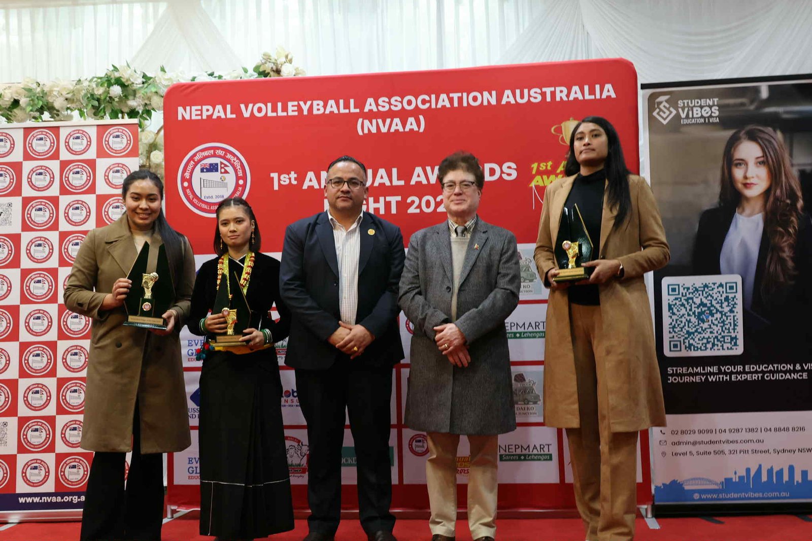 सिड्नी — नेपाली समुदायको खेलकुद ऊर्जा, एकता र योगदानलाई सम्मान गर्दै नेपाल भलिबल संघ अष्ट्रेलिया (NVAA) द्वारा आयोजित पहिलो Annual Awards Night 2025 शनिबार सिड्नीको रकडेलस्थित इन्द्रेणी फङ्सन सेन्टरमा भव्य रूपमा सम्पन्न भएको छ।