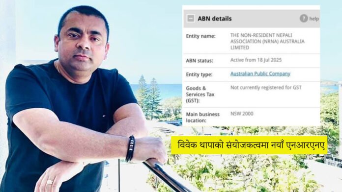 सिड्नी, अष्ट्रेलिया — गैरआवासीय नेपाली संघ (एनआरएनए) को अन्तर्राष्ट्रिय तहमा जारी विवाद समाधान नहुँदै अष्ट्रेलियामा नयाँ संस्था ‘NRNA Australia’ को औपचारिक घोषणा गरिएको छ। २०२५ जुलाई १८ मा अष्ट्रेलियाको सरकारी निकायमा कानुनी रूपमा दर्ता भएको यो संस्थाको संयोजकको जिम्मेवारी विवेक थापाले सम्हालेका छन्।