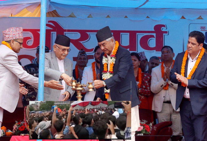 काठमाडौं, काठमाडौंको टुँडीखेलमा आयोजित गौरा पर्वको कार्यक्रममा विरोध प्रदर्शनका कारण तनाव उत्पन्न भएको थियो । प्रधानमन्त्री केपी शर्मा ओली र नेपाली कांग्रेसका सभापति शेरबहादुर देउवाविरुद्ध प्रदर्शनकारीहरूले नाराबाजी गरेका थिए, जसका कारण प्रहरीले तीन जनालाई पक्राउ गरेको छ।