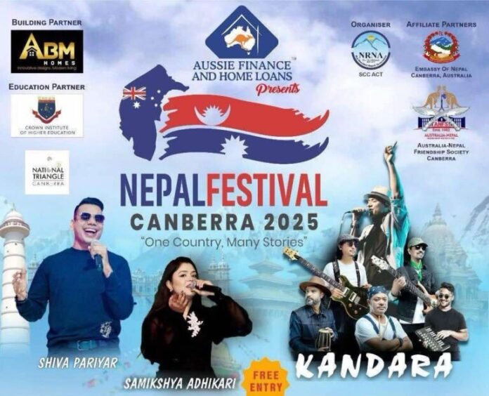 नेपाल फेस्टिबल क्यानबेरा स्थित स्टेज ८८, कमनवेल्थ पार्कमा आयोजना गरोनेछ फेष्टिवलमा नेपाली परम्परागत झाँकी,कुमारी रथ यात्रा , नेपाल हाउस ,पञ्चेबाजाको धुन सहितको भव्य परेडको आयोजना गरिने छ ।